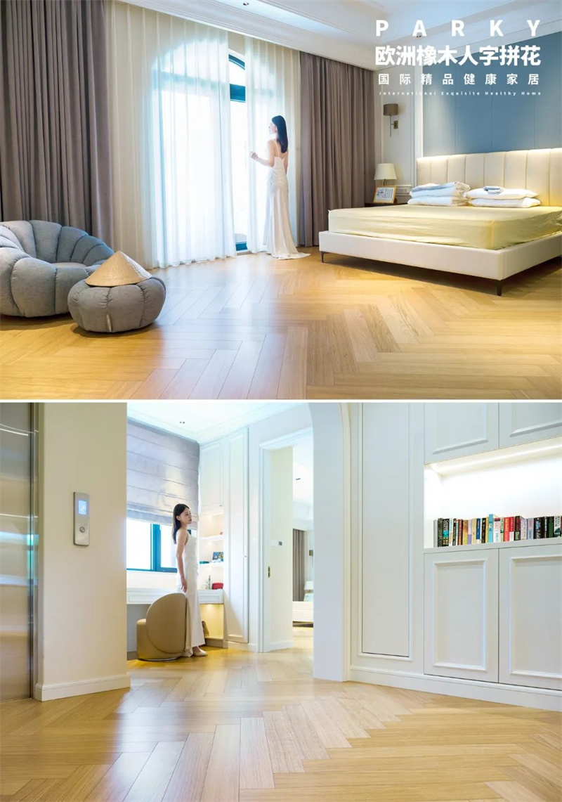 淺色調(diào)線(xiàn)性木紋肌理,注入明凈的舒適視感。人字拼花造型增添豐富的層次感與立體感,極具摩登質(zhì)感,每一處細(xì)節(jié)里,都可見(jiàn)高雅的品味追求。?