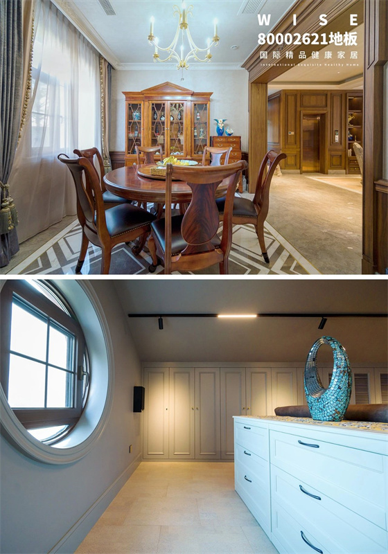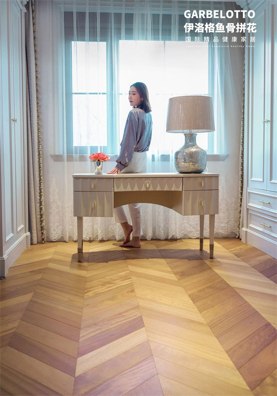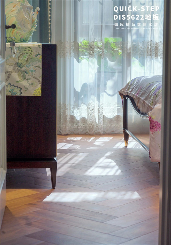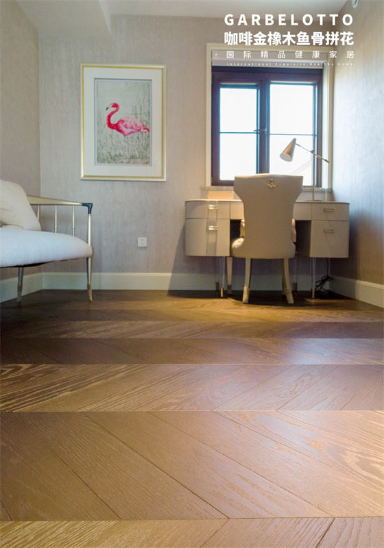 DIS5622地板以原木色做底、咖色鮮明木紋點(diǎn)綴,天然實木的花色紋理,呈現(xiàn)自然韻律之美,傳遞內(nèi)斂的奢華。人字拼通鋪加強(qiáng)空間立體感、具有視覺拉伸的效果,規(guī)則的線條層次讓家高級又時尚。?